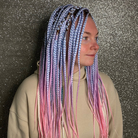 Light Blue to Pink Ombre Synthetic Braids